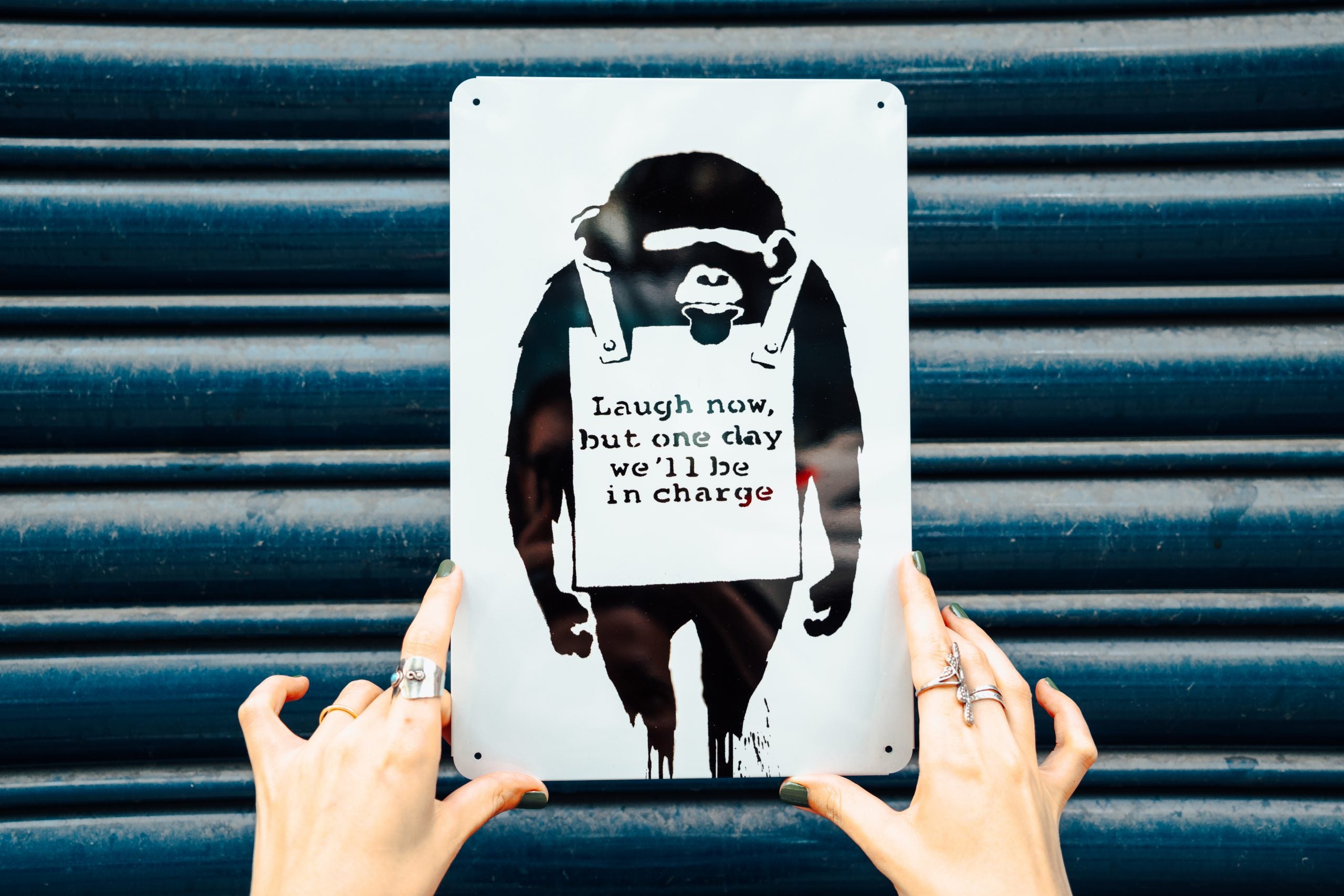Jedes Stück wurde mit Präzision und Hingabe aus hochwertigem Metall gefertigt. Durch kunstvolles Design und meisterhafte Handwerkskunst gelingt es, die Essenz von Banksys kreativem Genie einzufangen. Diese Wanddekorationen sind eine Hommage an seinen rebellischen Geist und seine einzigartige Herangehensweise an die Kunst. Maße: H x B (cm): 28 x 18,5 Material: Metall