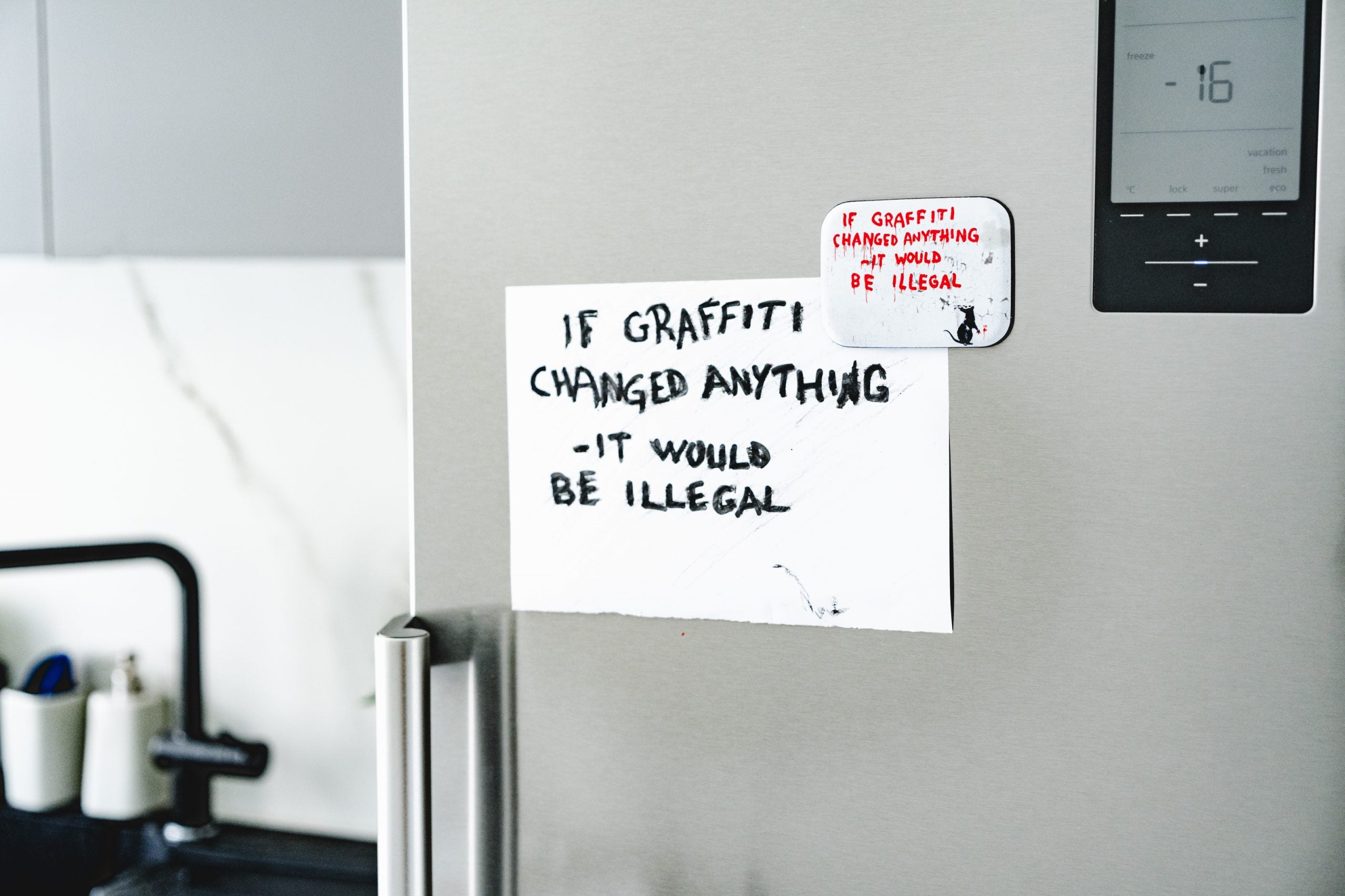 Diese speziell entwickelten Magnete, die der Oberfläche Ihres Kühlschranks Farbe verleihen und sowohl Kunstliebhaber als auch diejenigen, die Wert auf Eleganz legen, faszinieren, gehen über einen gewöhnlichen Magneten hinaus. Die Magie der Banksy-Kunst: Jeder Magnet zeigt einzigartige Drucke der berühmtesten Werke des berühmten Straßenkünstlers Banksy. Machen Sie die Atmosphäre Ihres Zuhauses sofort künstlerischer und atemberaubender. Maße: H x B (cm): 8 x 6
