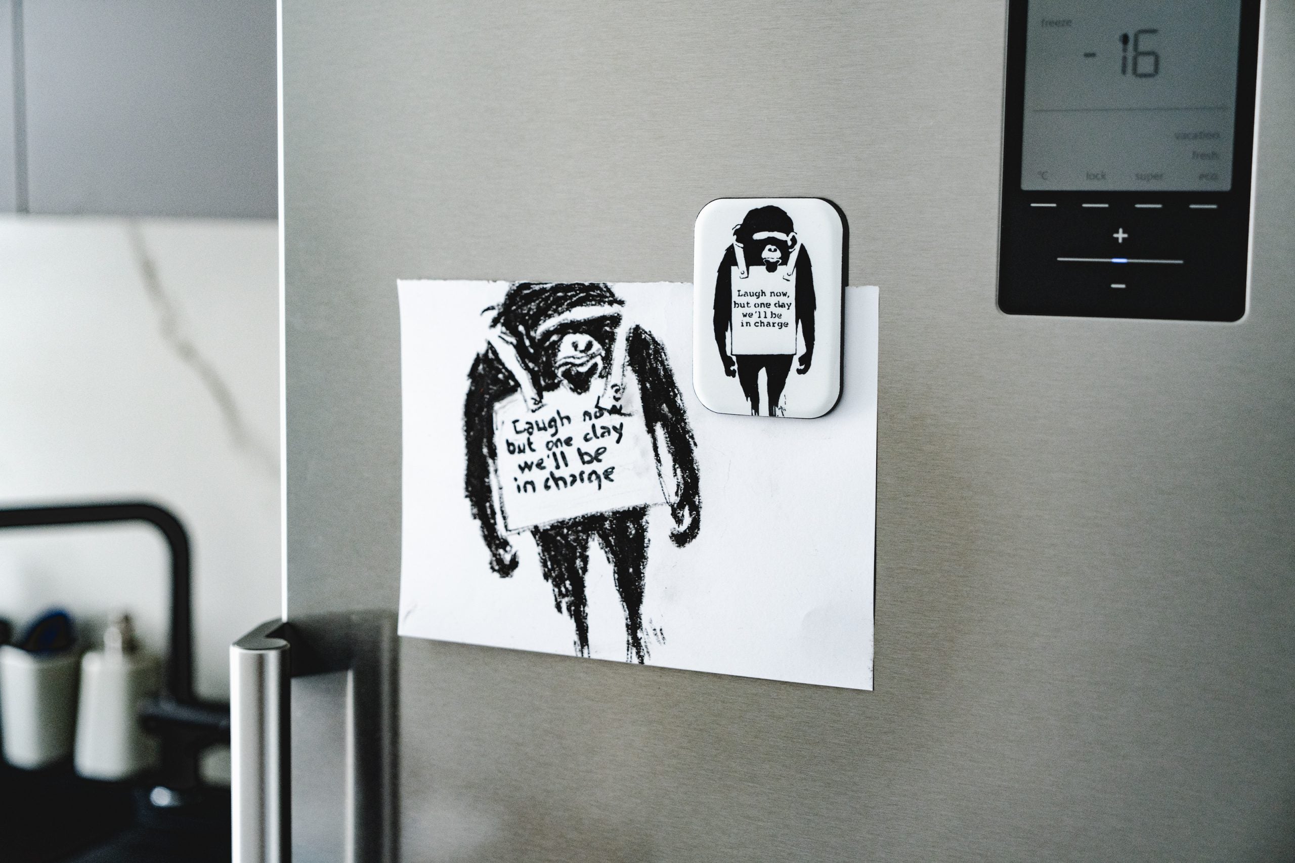 Diese speziell entwickelten Magnete, die der Oberfläche Ihres Kühlschranks Farbe verleihen und sowohl Kunstliebhaber als auch diejenigen, die Wert auf Eleganz legen, faszinieren, gehen über einen gewöhnlichen Magneten hinaus. Die Magie der Banksy-Kunst: Jeder Magnet zeigt einzigartige Drucke der berühmtesten Werke des berühmten Straßenkünstlers Banksy. Machen Sie die Atmosphäre Ihres Zuhauses sofort künstlerischer und atemberaubender. Maße: H x B (cm): 8 x 6