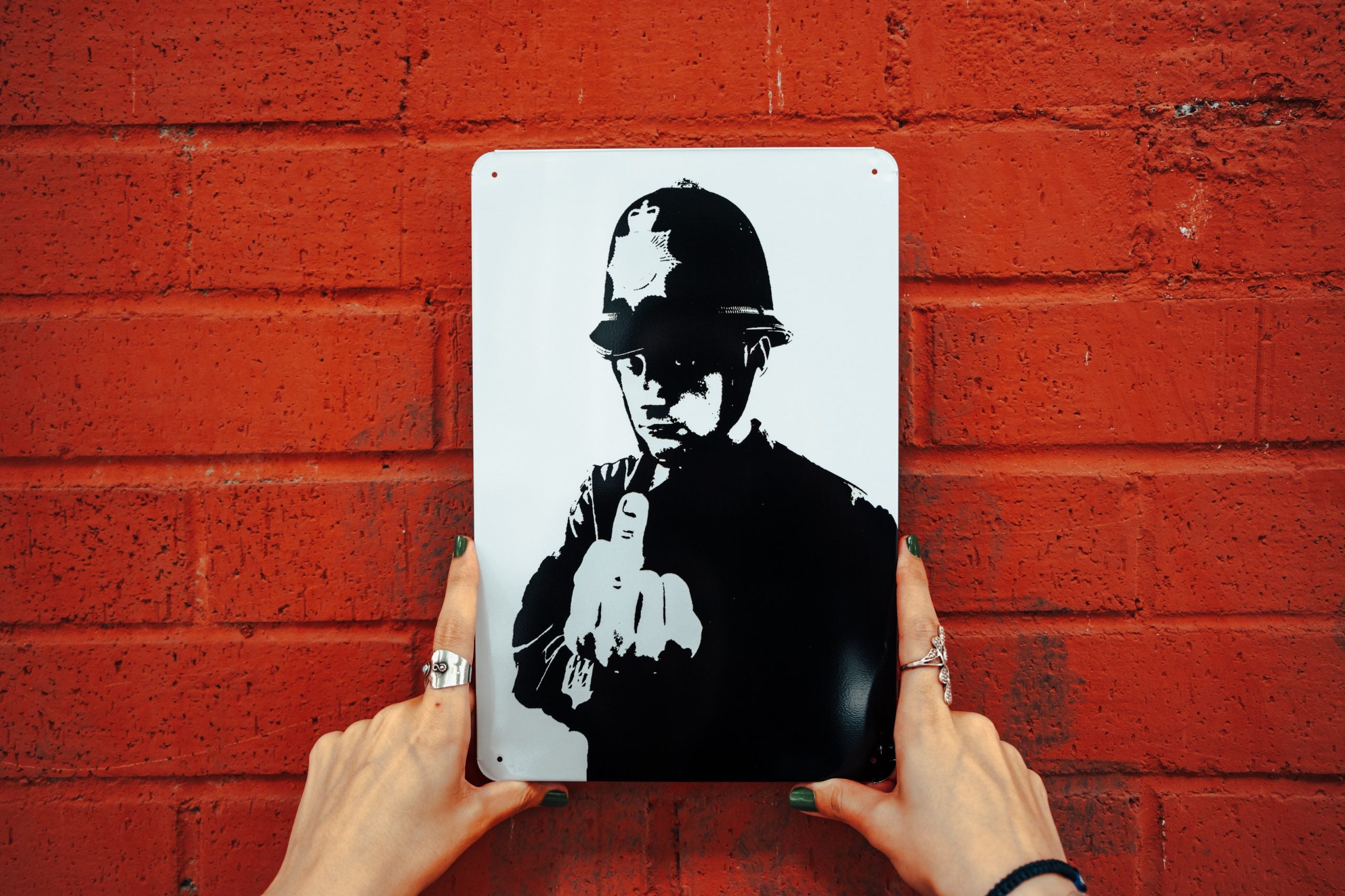 Jedes Stück wurde mit Präzision und Hingabe aus hochwertigem Metall gefertigt. Durch kunstvolles Design und meisterhafte Handwerkskunst gelingt es, die Essenz von Banksys kreativem Genie einzufangen. Diese Wanddekorationen sind eine Hommage an seinen rebellischen Geist und seine einzigartige Herangehensweise an die Kunst. Maße: H x B (cm): 28 x 18,5 Material: Metall