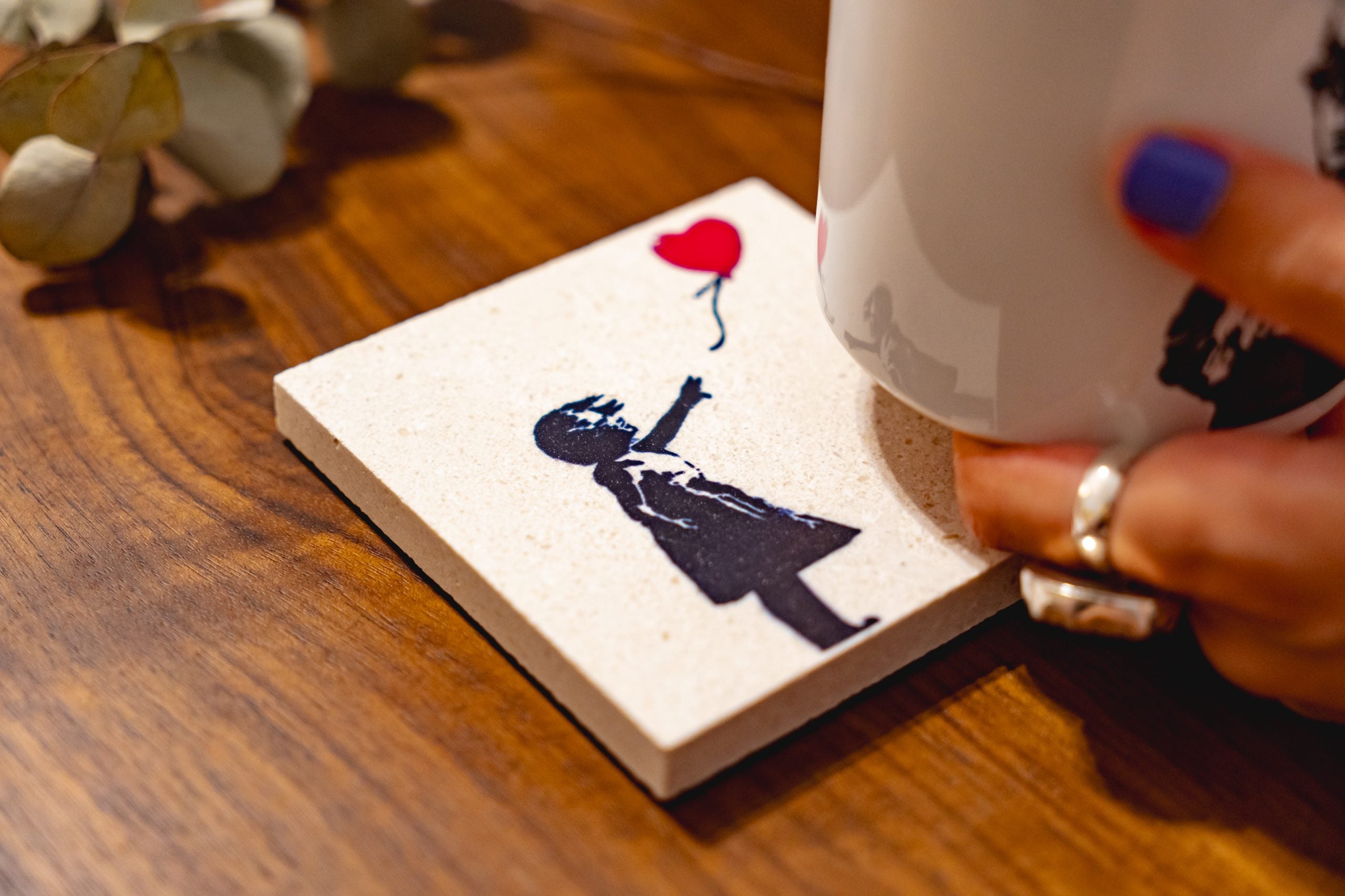 Diese Untersetzer sind aus hochwertigem, strapazierfähigem Material gefertigt, das gegen Flüssigkeit und Flecken beständig ist. Sie bieten eine praktische und ästhetische Lösung. Wenn Sie Farbe in Ihr Zuhause oder Büro bringen und gleichzeitig eine starke künstlerische Aussage teilen möchten, dann sind diese Untersetzer eine hervorragende Wahl.
